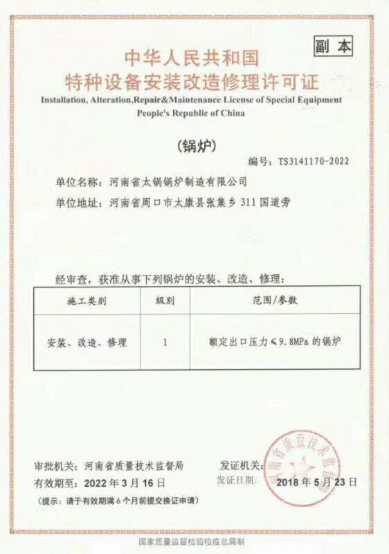 歡迎來到河南省太鍋鍋爐制造有限公司官網! 銷售熱線:15224972999